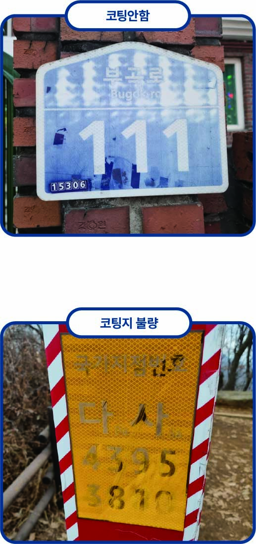 따라서 코팅 처리가 이루어지지 않을 경우 시설물의 외관과 가독성이 단기간 내에 손상될 수 있다.