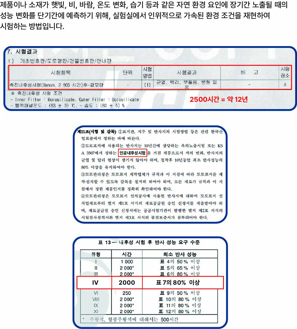 촉진 내후성 시험은 단순한 연구용 실험에 그치는 것이 아니라, 일상생활 속에서 활용되는 주소정보시설과 같은 공공 시설물이