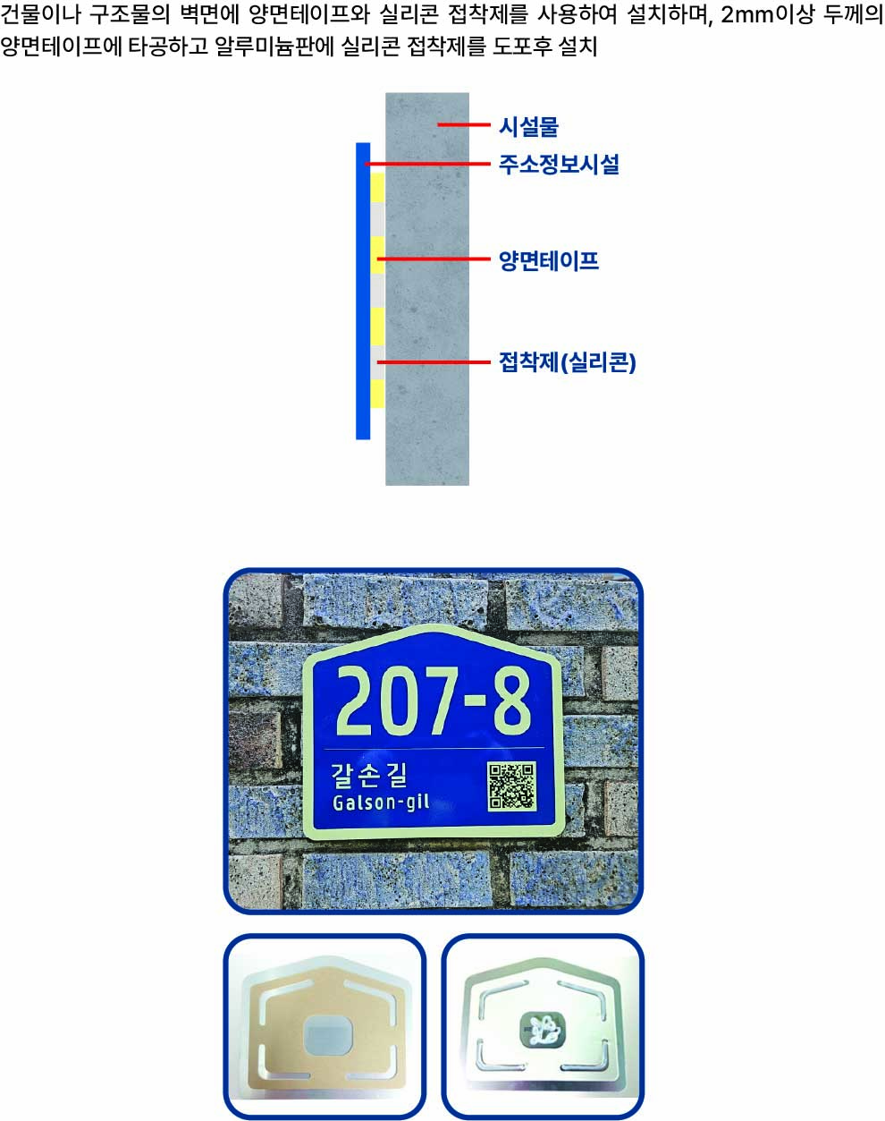 부착형 방식은 벽에 큰 구멍을 뚫지 않고 설치가 가능하므로, 건물 외벽 손상을 최소화하면서도 주소정보시설을 견고하게 고정할 수