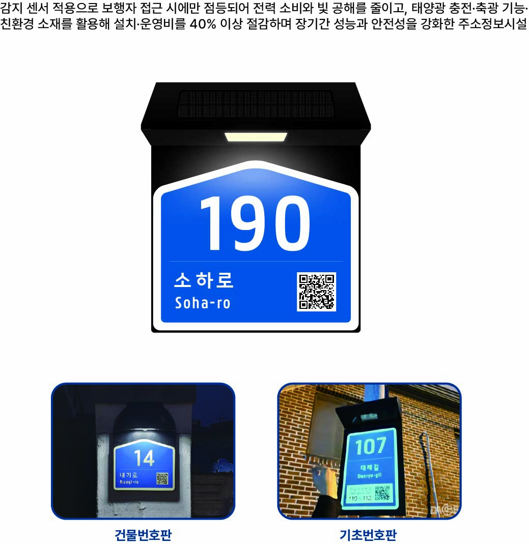 종합하면, 태양광 LED 내부조명형 주소정보시설은 친환경적이고 에너지 자립형이며, 자동 점등·소등 기능으로 관리 편의성이 높고