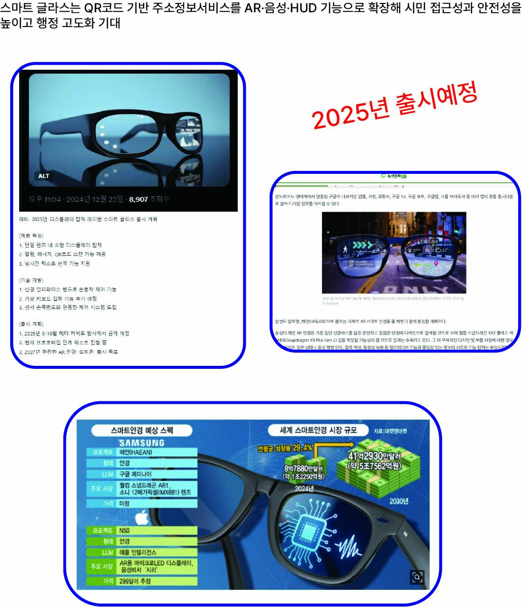따라서 스마트 글라스는 향후 주소정보시설 서비스의 혁신적 전환점으로 기능할 것이라 평가할 수 있다.